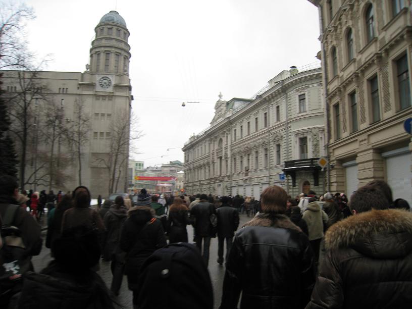 お腹がいっぱいになったところで、いざ!!ところがメイン会場は赤の広場南東の端つまりワシリー聖堂の裏側なのですが警官隊が道を封鎖している!!Σ( ̄Д ̄;)