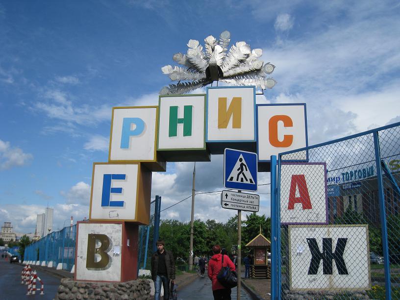 駅を出てすぐ左に行くと、目の前にホテル「イズイマイロヴォ・ベガ」が見えてきますその左に「ヴェルニサーシュ」とかいた門が見えます。その門をくぐり遊歩道を歩いて行くと・・・