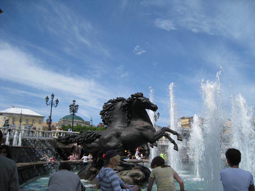 天気がよくて芝生に寝転がりながらビールと行きたいところですが、ロシアでは基本的に道路や広場での飲酒は禁止されており、普通の道や中心街から離れた場所などでは特に問題はないのですが、ここでは常時2人1組の警官や騎馬警官が巡回しており、お酒を飲んでるところを見つけるとしめたとばかりに罰金の徴収にかってきます・・・。┌(;>ム<)┘(;ーдー)